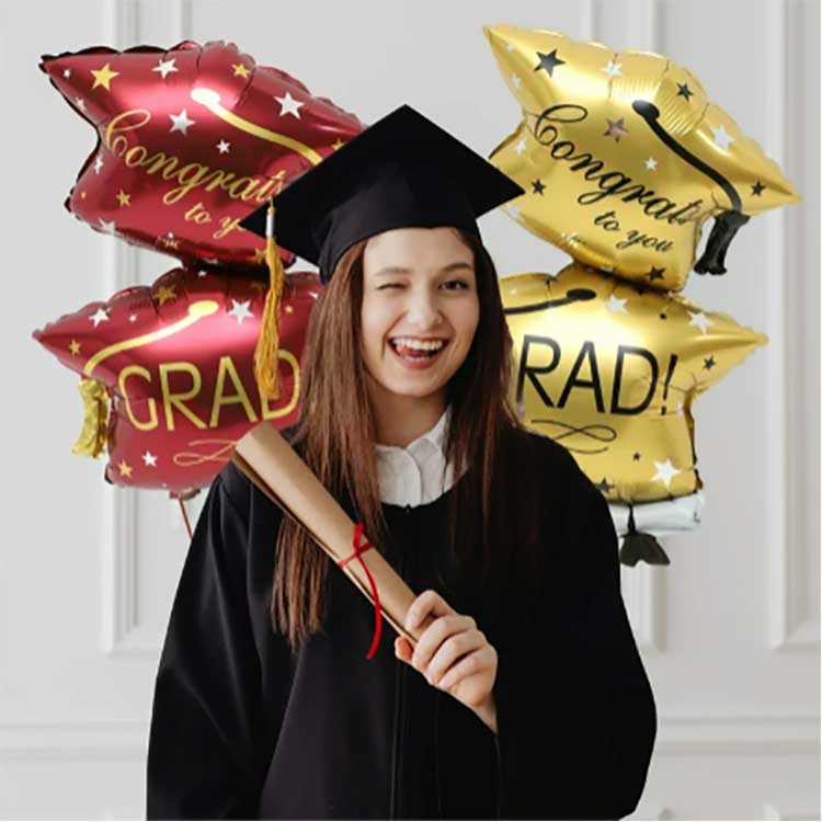Tá an Socraigh Maisiúcháin Balúin Cap Céime 32 Orlach seo sturdy, durable, sábháilte, agus neamhdhíobhálach don chomhshaol. Coinníonn sé a cruth ar feadh i bhfad agus is féidir é a theannadh ar feadh laethanta nó fiú seachtainí. Bain úsáid as an tuí atá san áireamh leis na balúin a dhíbhoilsciú go cúramach agus iad a stóráil i gceart. Le haghaidh céime na bliana seo chugainnmaisiúcháin séasúr. Tá na Balúin Scragall Séasúr Céime seo oiriúnach le haghaidh maisiúcháin páirtí céime do gach aois.