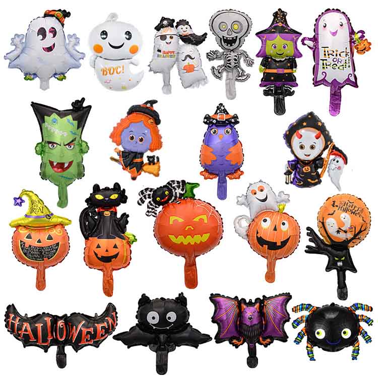 Tugann an balún scannán alúmanaim seo le chéile eilimintí clasaiceacha Oíche Shamhna ar nós cloigeann, lóchrainn pumpkin, sciatháin leathair, damháin alla, srl. Tá cruth an chartúin gleoite agus beagán aisteach. Is féidir leis an mionmhéid atmaisféar láidir féile a chruthú go héasca cibé an bhfuil sé crochta ina aonar nó cuirtear i dteannta a chéile é.