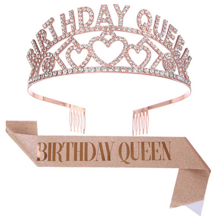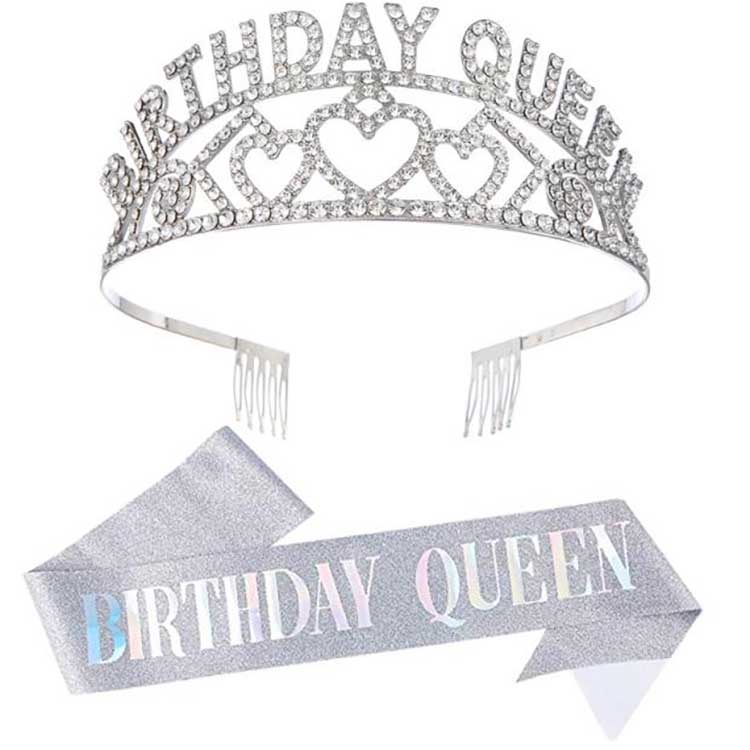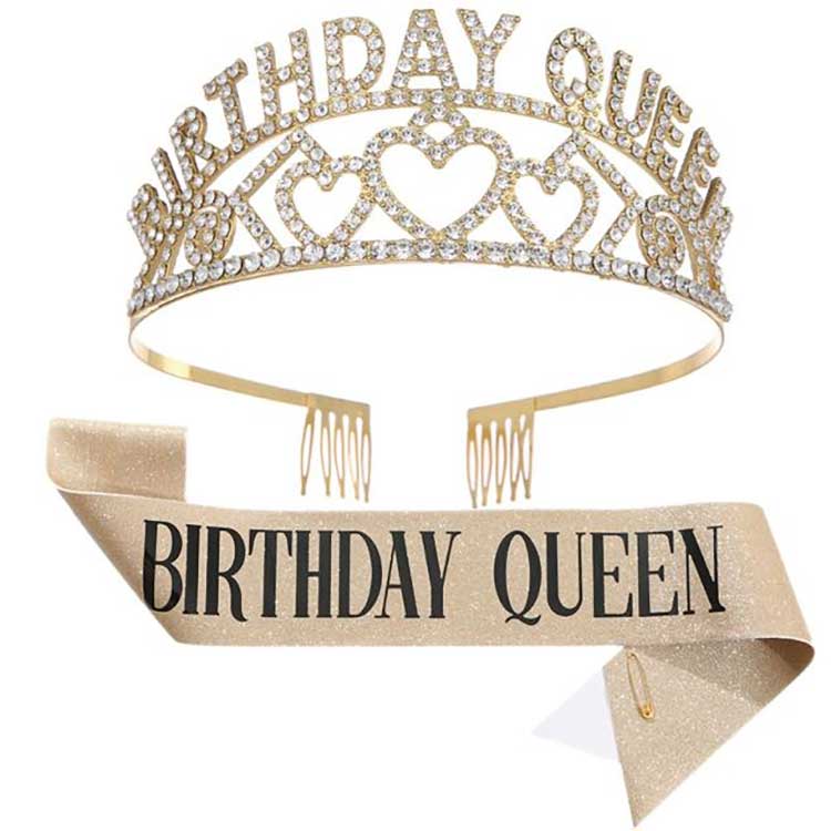 Is é an Choróin na Banríona Breithlá ceannphíosa a thagann mar thacar leis an strap ghualainn.Tá príomhchorp an choróin déanta as cóimhiotal, ag cinntiú nach mbeidh sé céimnithe nó damáiste. Bhaineamar úsáid as teicníc inleagtha chun na diamaint a dhaingniú go dtí an fráma cóimhiotal, chun iad a chosc ó thitim amach go héasca. Ráthaíonn an caighdeán foirfe táirge seo gur féidir leat leanúint ar aghaidh ag úsáid é ag imeachtaí lá breithe sa todhchaí.