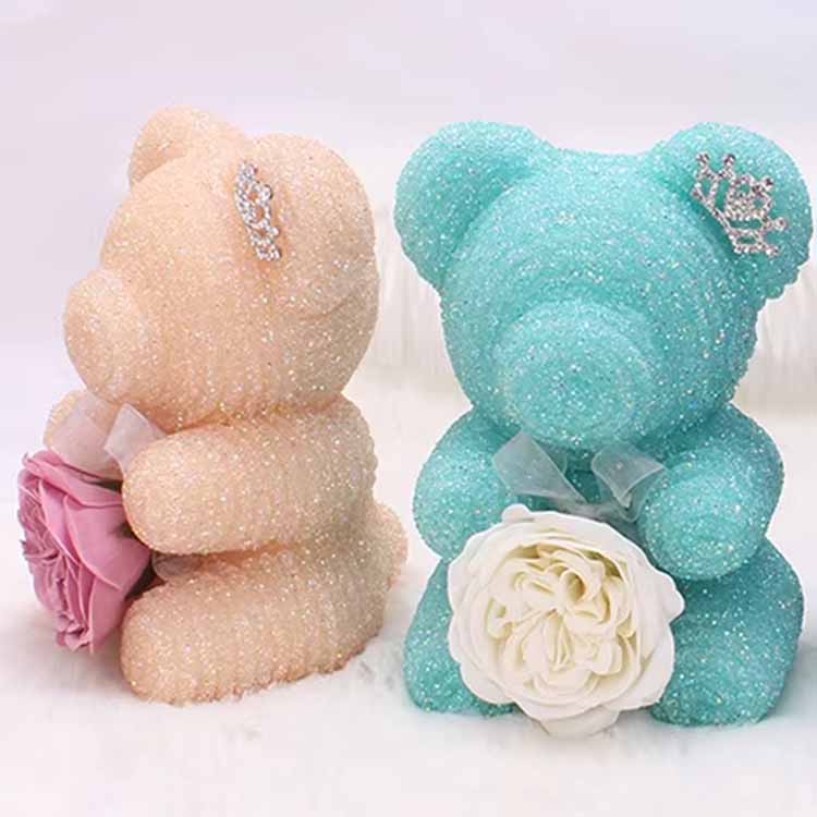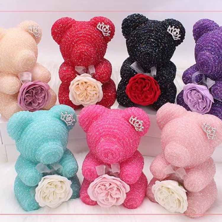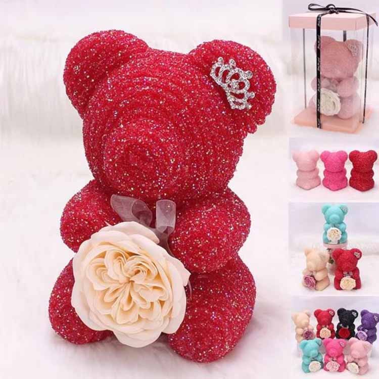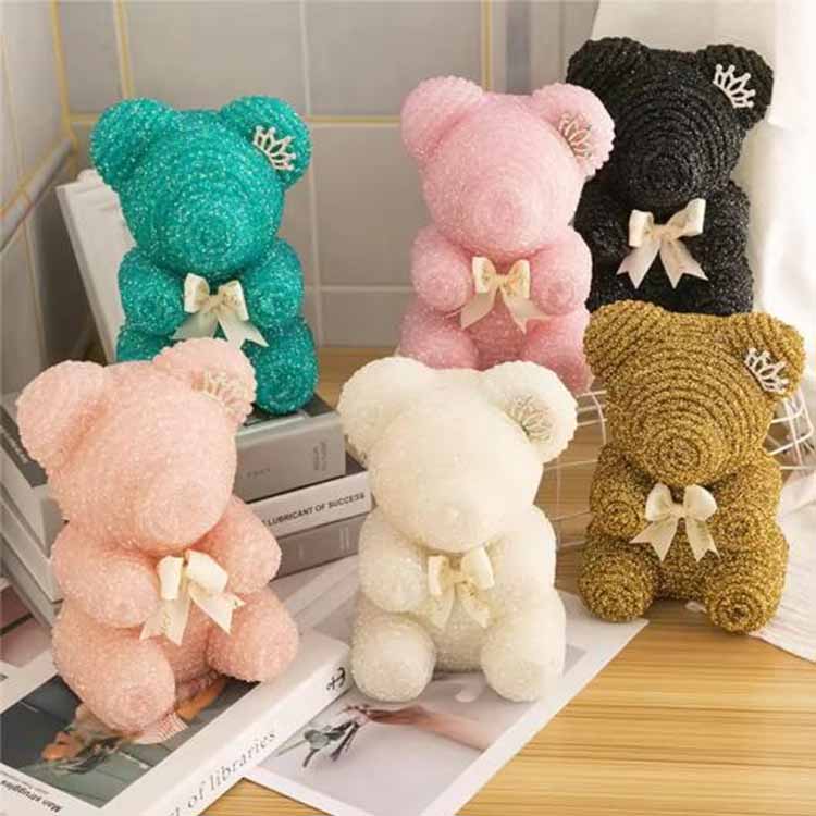 Is éard atá sa Diamond Rose Bear ná mír téamaí béar déanta as diamaint shaorga agus atá maisithe le bláthanna, coróin, bogha, agus gabhálais eile. Is féidir é a thabhairt mar bhronntanas do dhuine grámhar nó do chara, nó é a úsáid mar mhaisiú.