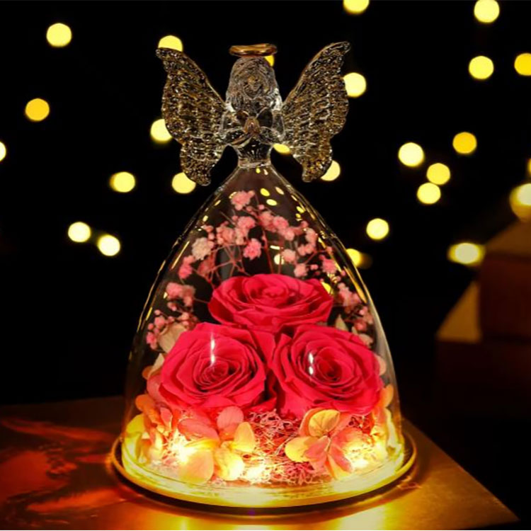 Tá an bronntanas bláthanna caomhnaithe aingeal gloine seo foirfe le haghaidh ócáidí éagsúla.Birthdays, graduations, Lá na Máthar, na Nollag, Lá Vailintín, agus níos mó! Is bronntanas iontach é d'aon ócáid a bhfuil tú ag iarraidh áthas agus grá a scaipeadh.