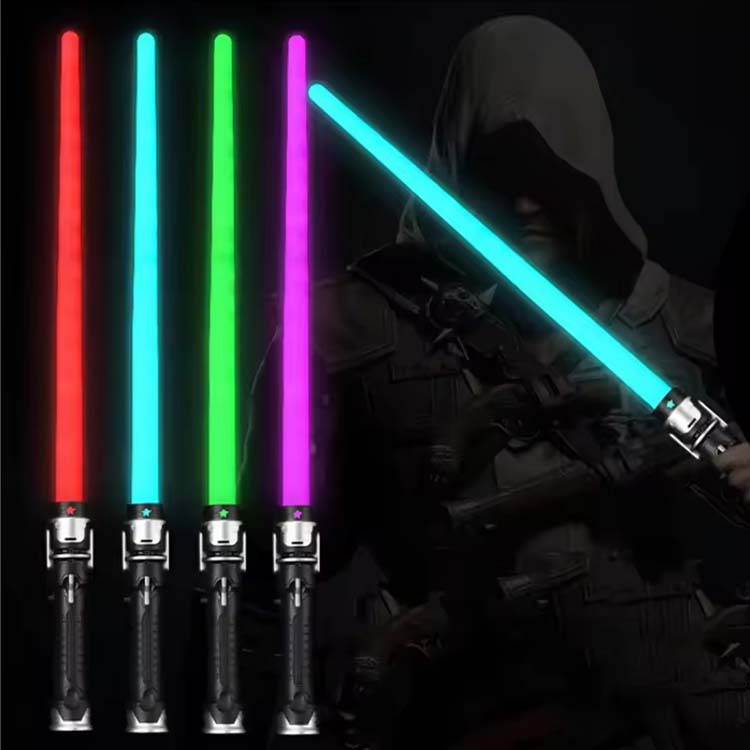 Ár claíomh léasair glowing suas le láimhseáil dearadh atá éasca le grip. Tá modh splanctha solais i gceannas air freisin. Tá an dath agus an fhuaim íogair ó thaobh gluaisne de.