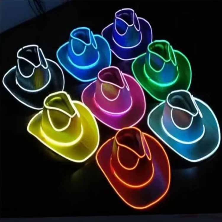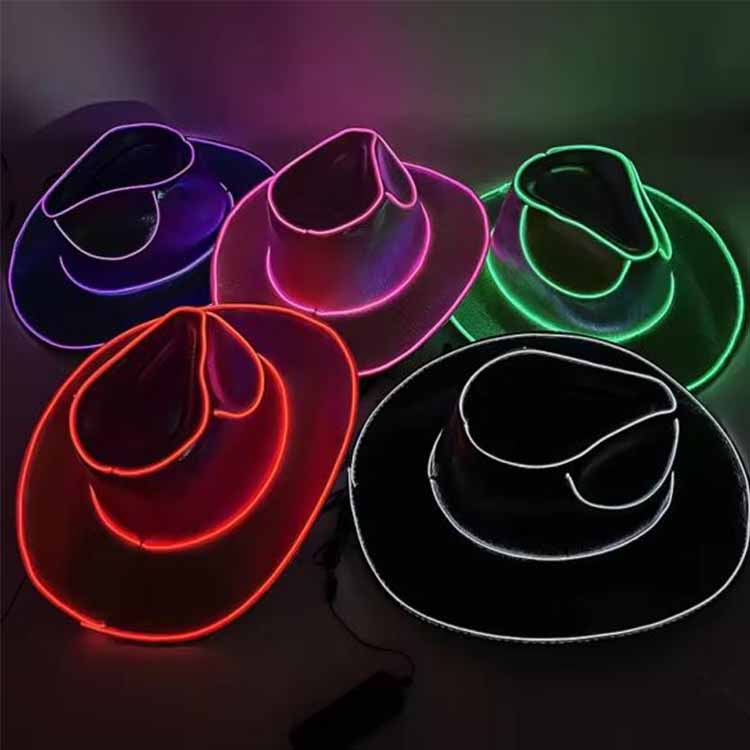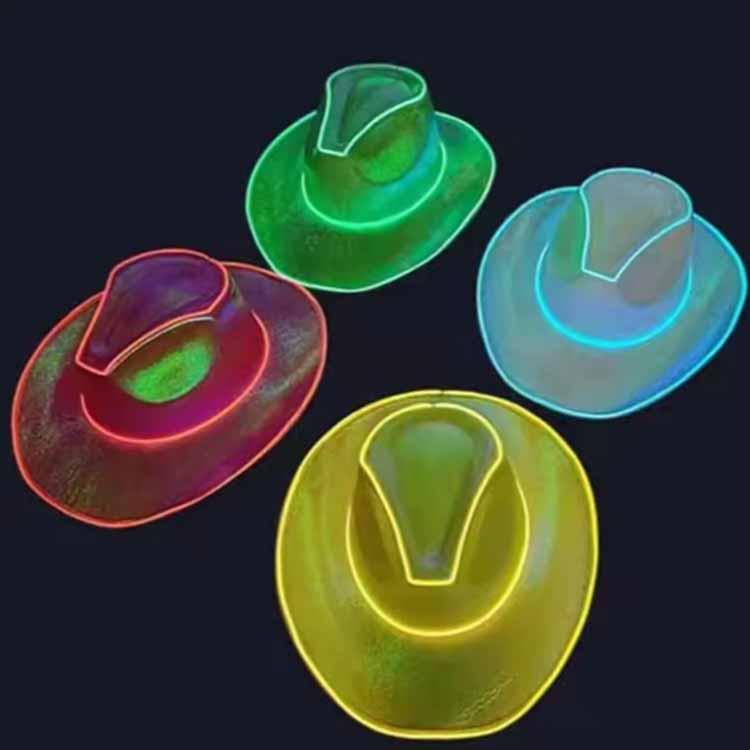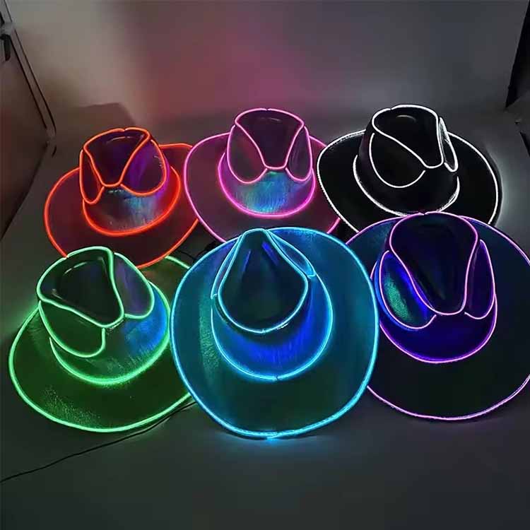 Tá an hata fluaraiseach ildaite seo faoi stiúir éasca le húsáid agus is féidir é a shuiteáil go héasca i díreach 5 nóiméad. Níl ort ach dhá chadhnraí AA a shuiteáil, an lasc a chur ar siúl, agus taitneamh a bhaint as spraoi an hata cowboy éadrom.