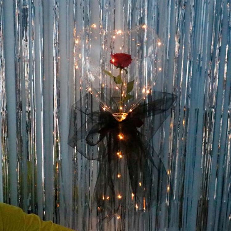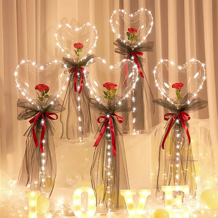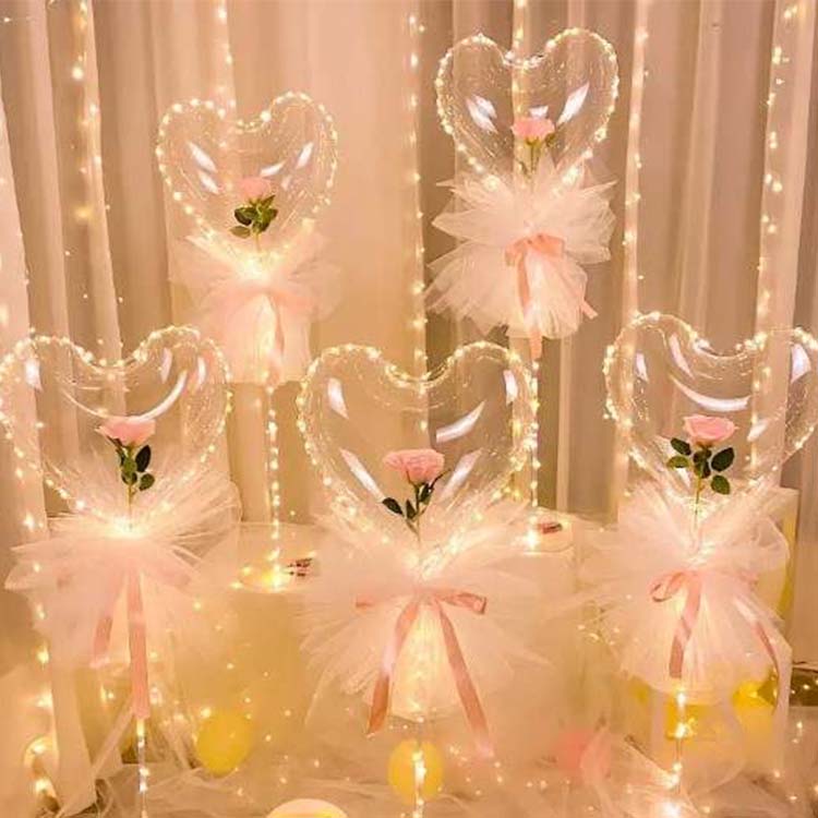 Balún Bobo a chóimeáil: Ar dtús, bain úsáid as caidéal aeir chun an balún Bobo a líonadh saSocraigh Bobo Rose múnlaithe croíLe haer, ansin cuir an tsreang solais ó bhun go barr, agus ansin socraigh an bosca ceallraí go dtí an suíochán Bobo chun a chinntiú gur féidir leis an solas solas a lasadh de ghnáth.