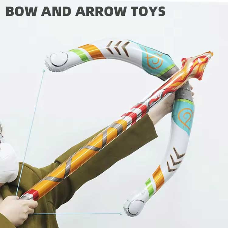 Tá sraith bréagán bogha agus saighead inséidte déanta as PVC , atá in ann súgradh díograiseach leanaí a sheasamh. Inflates sé go tapa agus coinníonn sé a cruth ar feadh i bhfad. Áirítear trí chlaíomh le haghaidh idirmhalartaithe níos éasca.