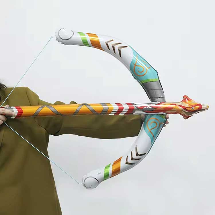 Inflating: Bréagán bogha agus saighead inséidte socraithe go hiomlán ag baint úsáide as do bhéal nó caidéal aeir beag (nach bhfuil san áireamh de ghnáth).