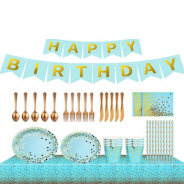 Is earraí boird indiúscartha atá neamhdhíobhálach don chomhshaol é an tacar earraí boird páirtí seo agus is cineál earraí boird féasta é. Stíleanna éagsúla agus praghsanna réasúnta. Is féidir dearaí agus dathanna éagsúla a shaincheapadh de réir do riachtanas.