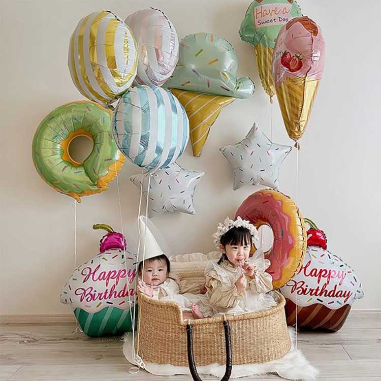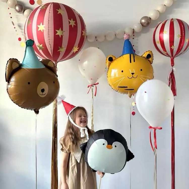 Is féidir linn teicneolaíocht priontála scáileáin a úsáid chun do lógó a mhacasamhlú ar balún scragall Pearsantaithe, ag soláthar méideanna cosúil le cruthanna babhta 10-orlach, réalta agus croí; cruthanna babhta, réalta agus croí 18-orlach; balúin 4D; cruthanna balún aer te, etc.
